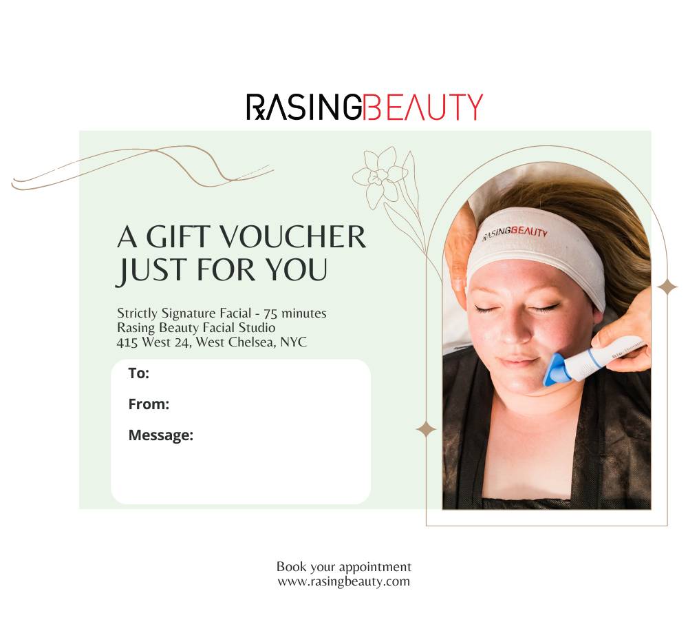 Redeemable at Rasing Beauty's Private Facial Studio, 415 West 24, West Chelsea, NYC.